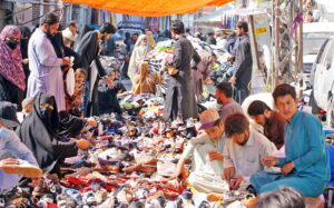 Pic30-015 RAWALPINDI-Oct30: People are busy is buying warm shoes at Landa Bazaar in Sunday weekly bazaar at Committee chowk area in the city. ONLINE PHOTO by Raja Asim