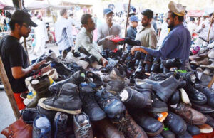 [caption id="attachment_9582" align="aligncenter" width="368"]<img class=" wp-image-9582" src="https://dailydateline.com/news/wp-content/uploads/2022/11/fdfdfd-300x194.jpg" alt="" width="368" height="238" /> KARACHI: People purchasing used shoes from a roadside stall.[/caption]