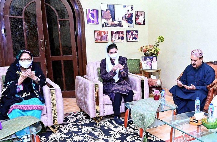 LARKANA: PPP leaders Bibi Aseefa Bhutto Zardari and President PPP Women Wing Pakistan, MPA Faryal Talpur offering Fateha after condoling with Ghulam Mohammed Isran on the sad demise of his Uncle late MPA Ghulam Mujadid Isran at his residence.